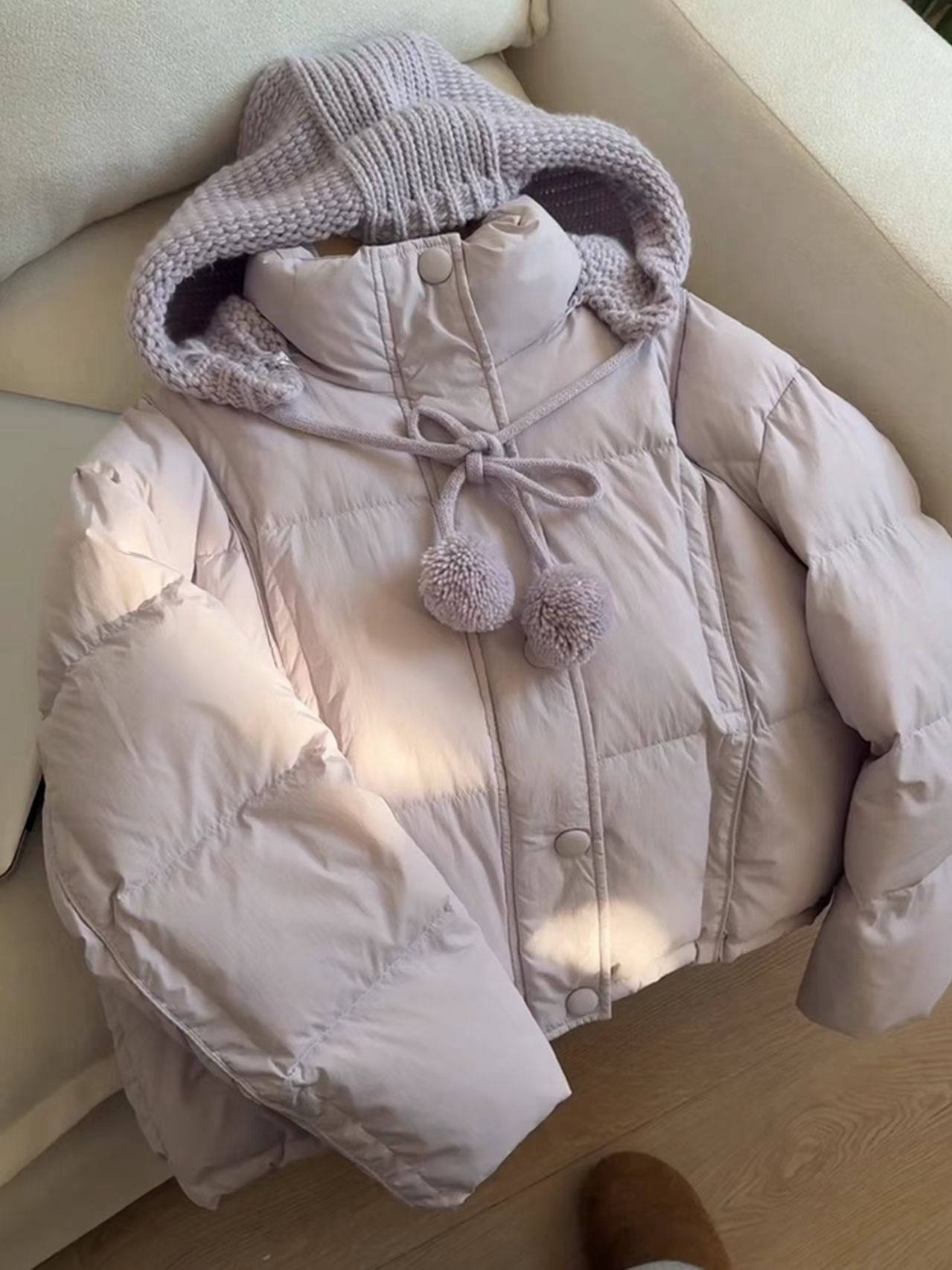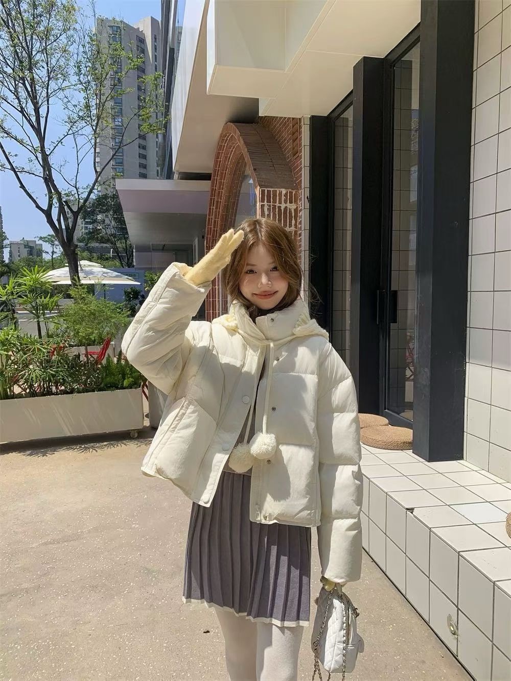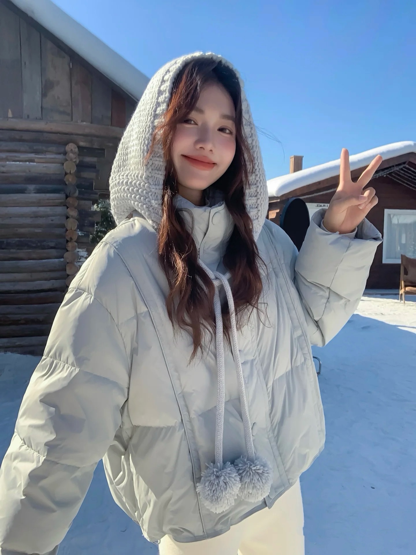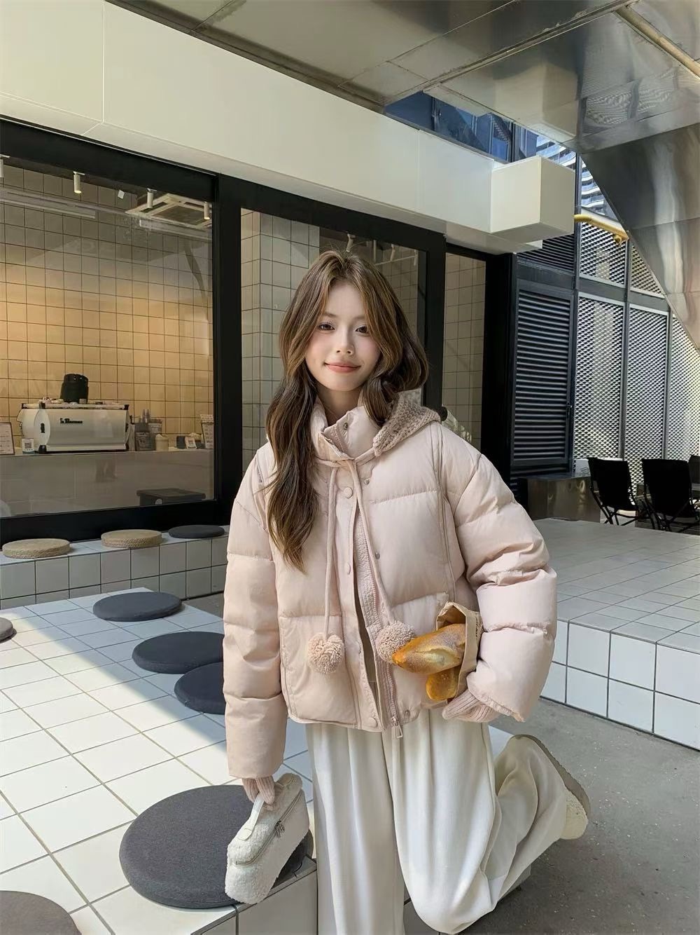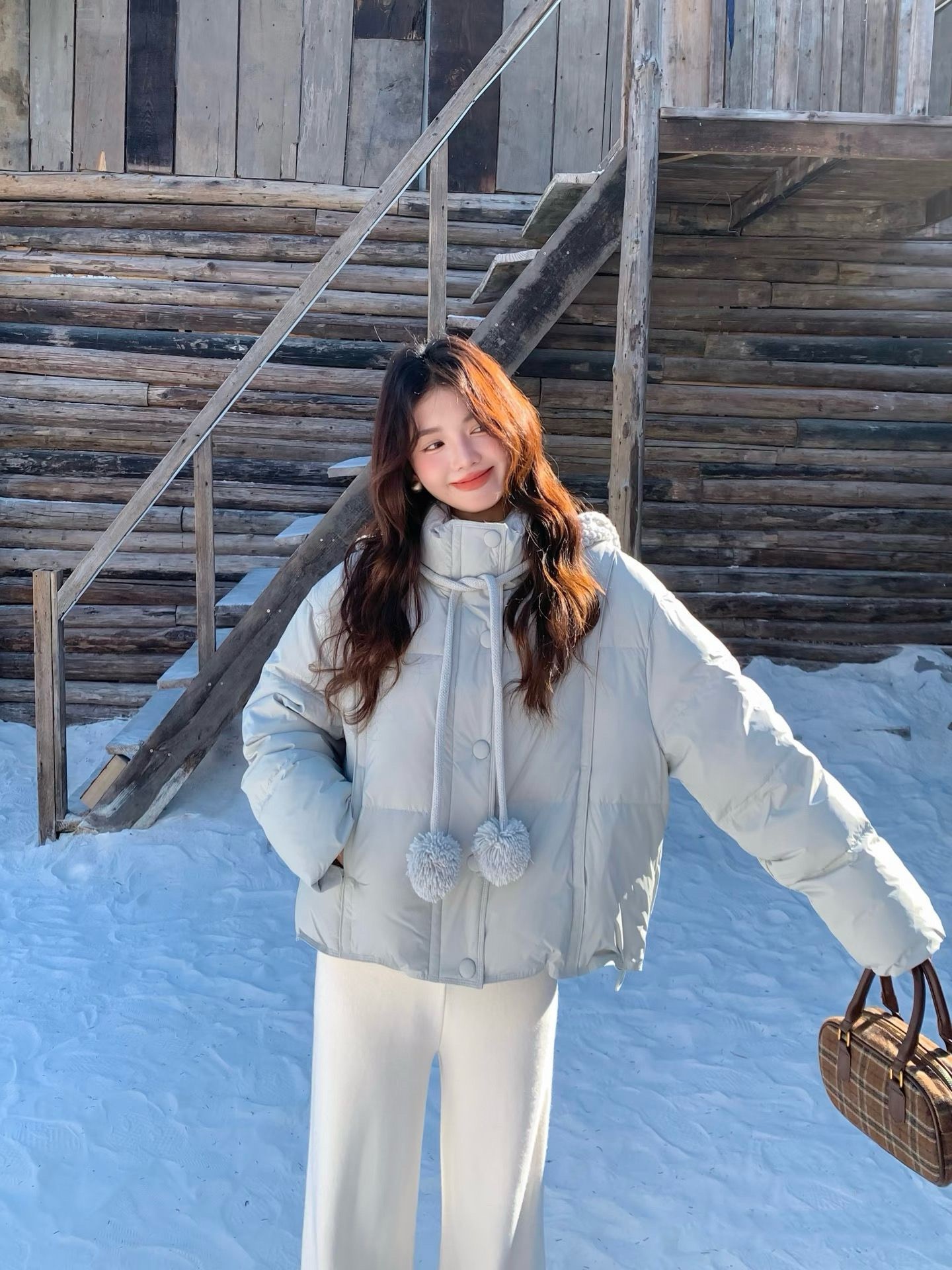 เสื้อโค้ทขนเป็ดแบบใหม่🎀🧶มาพร้อมกับฮู๊ดไหมพรมสุดคิ้วท์ สามารถถอดฮู๊ดไหมพรมได้