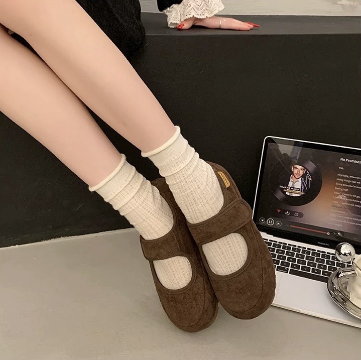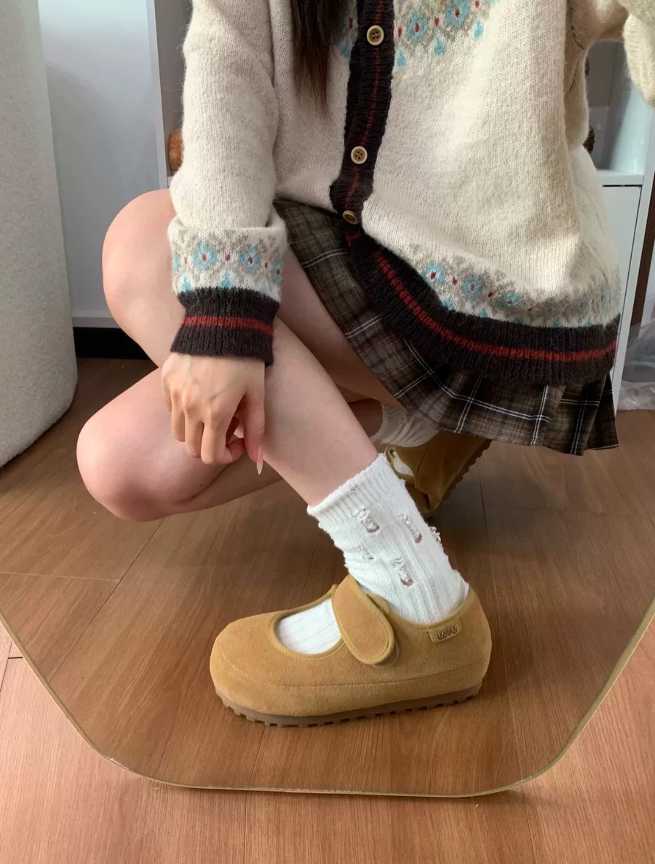 รองเท้าหนังกลับเมรี่เจน บุขนสุดน่ารักมากๆ ค่ะ นุ่มนิ่มใส่สบาย มีกันลื่น พื้นหนึบๆ เลยค่ะ