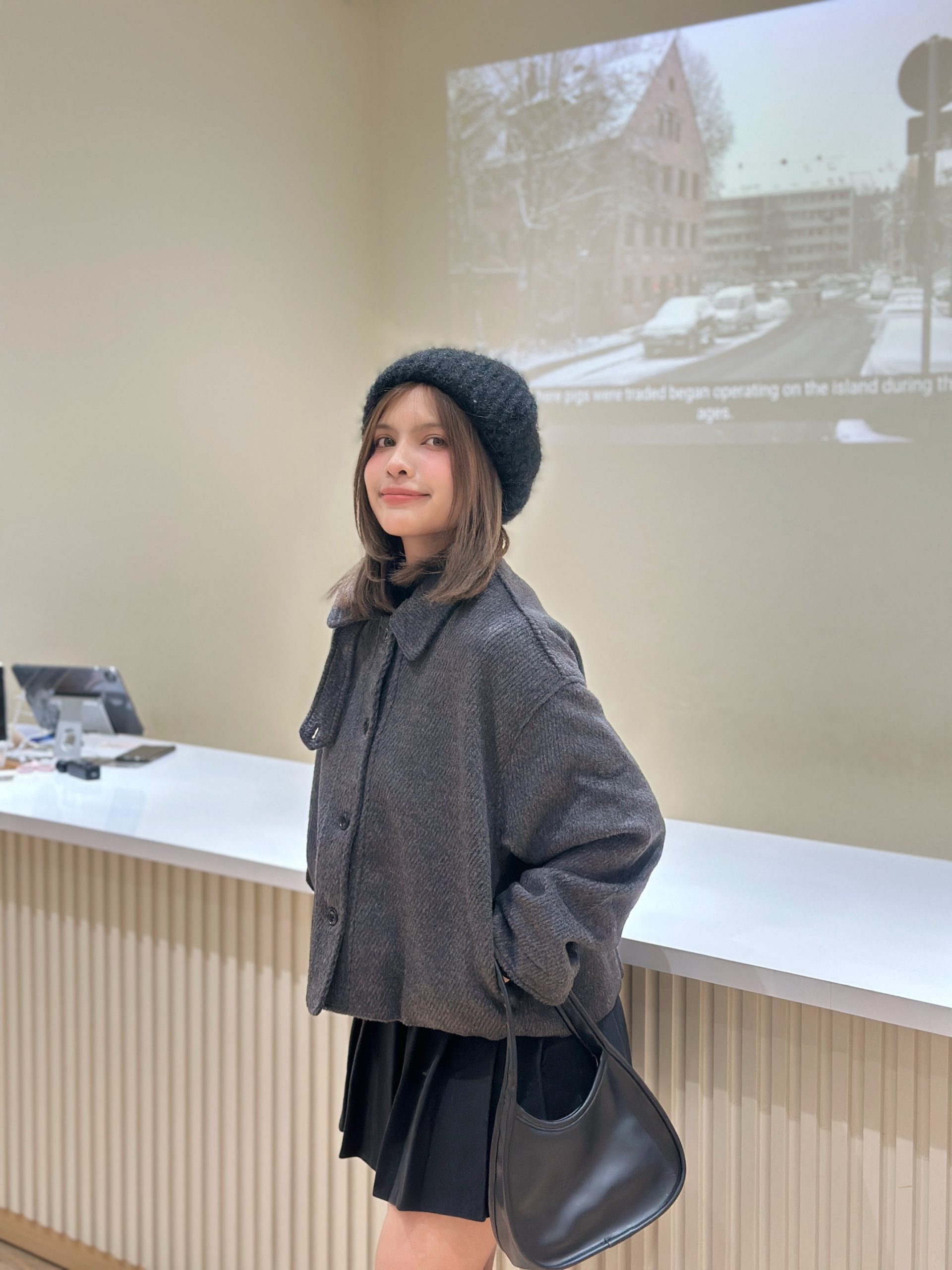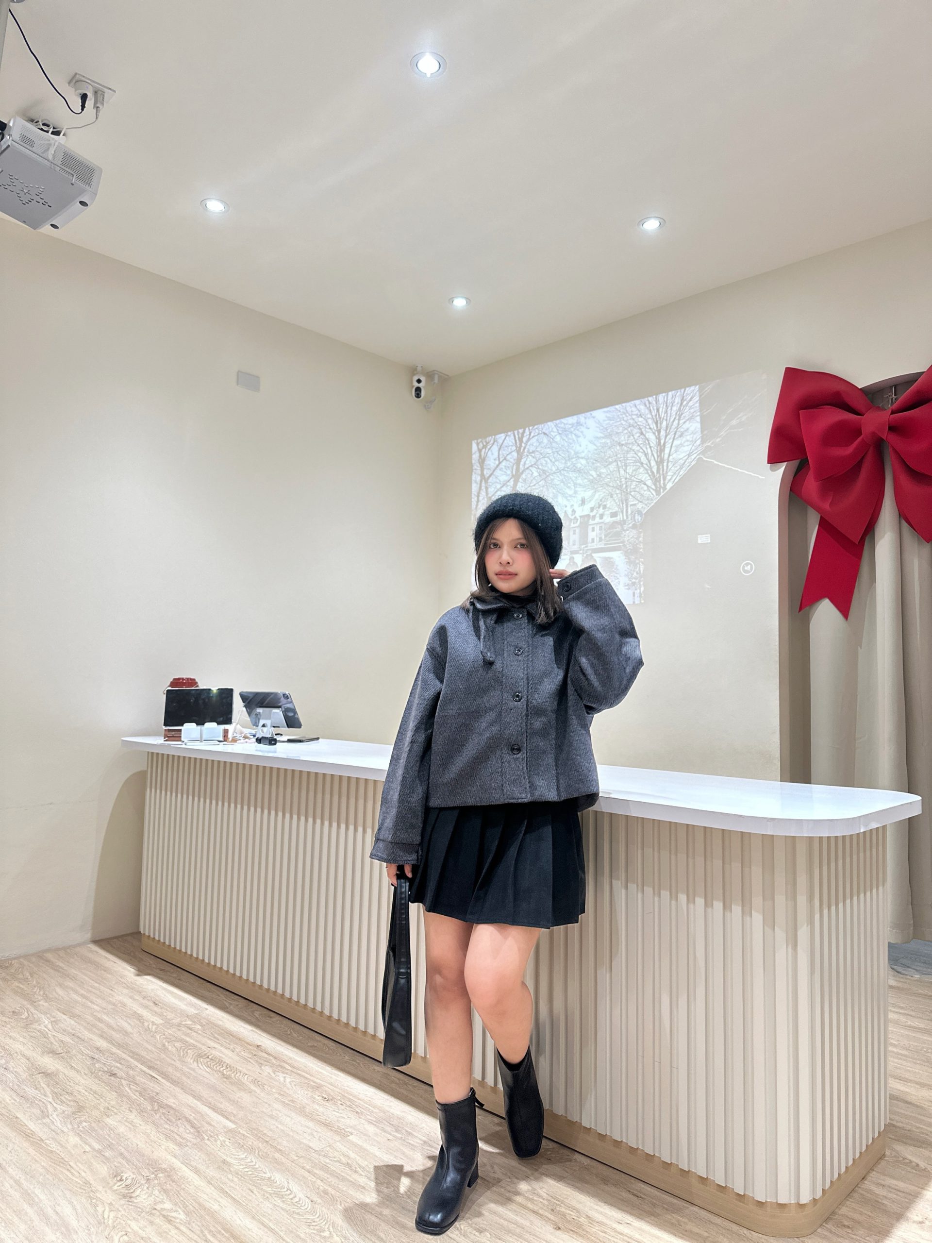 เสื้อโค้ทผ้าวูล มีดีเทลคอปกเท่ๆ คุณภาพดี นุ่มำม่คัน ใส่สบาย มีกระเป๋าด้านข้าง สไตล์เรียบๆ มินิมอล